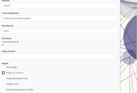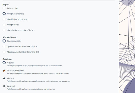 Επίσης μπορείτε να αλλάξετε τον τύπο πρόσβασης στο μάθημα. Έχετε τις εξής επιλογές: