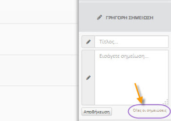 Με την συγκεκριμένη επιλογή μπορείτε εύκολα και γρήγορα να συντάξετε μια νέα σημείωση .Εισάγετε απλά τον τίτλο και την περιγραφή της σημείωσης σας και πατήστε αποθήκευση