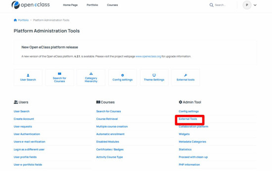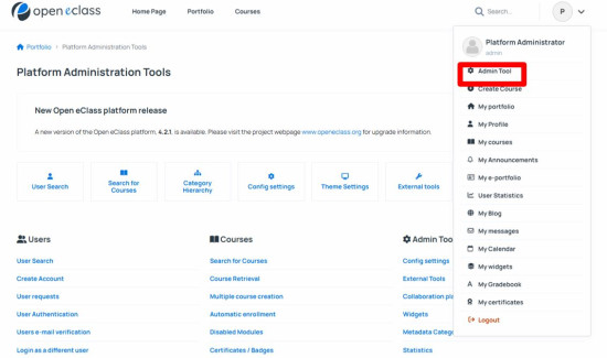 1. Συνδεθείτε ως διαχειριστής (admin) στο LMS και κάντε κλικ στο Εργαλεία Διαχείρισης (Admin Tool).