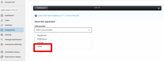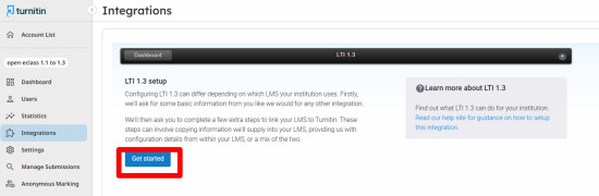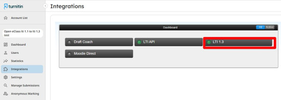 5. Σημειώστε το LTI 1.1 Provider Key (το ID λογαριασμού Turnitin). Στην επιλογή “LTI version”, επιλέξτε LTI 1.3.