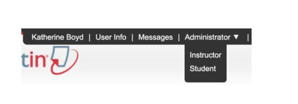 2. Βεβαιωθέιτε πως το Administrator view είναι ενεργοποιημένο από το μενού στο πάνω μέρος της οθόνης. Αν είναι επιλεγμένος είτε ο Instructor είτε ο Student, παρακαλούμε επιλέξτε το Administrator.