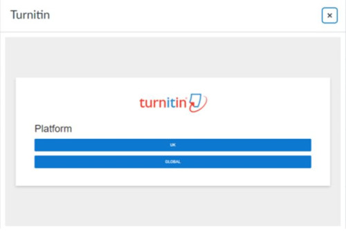 5. Στο καινούριο παράθυρο, θα υπάρχει η επιλογή να συνδέσετε το λογαριασμό που έχετε στο Turnitin. Επιλέξτε Global αν χρησιμοποιείτε το Turnitin μέσω του turnitin.com, επιλέξτε UK αν χρησιμοποιείτε το Turnitin μέσω του turnitinuk.com.