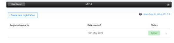 Οι διασυνδέσεις που εμφανίζονται ως Unconfigured θα έχουν ένα σβησμένο δείκτη κατάστασης. Το κίτρινο χρώμα υποδεικνύει μία μερικώς ρυθμισμένη διασύνδεση. Το πράσινο χρώμα υποδεικνύει μια πλήρως ρυθμισμένη διασύνδεση. Ο δείκτης LTI configuration δε θα εμφανιστεί ως ενεργοποιημένος στην οθόνη Integration Configuration όταν θα έχετε ολοκληρώσει τη ρύθμιση. Παρόλα αυτά, όταν επιλέξετε το Configuration Dashboard, η επιλογή LTI 1.3 θα εμφανίζεται με πράσινο χρώμα.