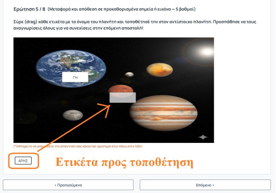 Καθορίστε την εκφώνηση της ερώτησης αλλά και τον τύπο αυτής ο οποίος στην συγκεκριμένη περίπτωση είναι ο τύπος “Μεταφορά και απόθεση σε προκαθορισμένα σημεία η εικόνα” και εν συνεχεία επιλεξτε την εικόνα στην οποία θα γίνει η μεταφορά και η εναπόθεση μέσα από το σύνδεσμο “Περιήγηση”. Επιλέξτε από τα αρχεία σας την εικόνα που επιθυμείτε και πατήστε το σύνδεσμο “Δημιουργία”.