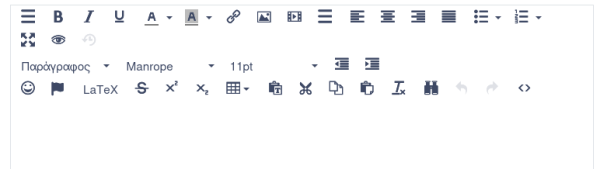 Για ευκολία μπορείτε να κάνετε κλικ στο αντίστοιχο εικονιδιάκι “Latex” του συντάκτη κειμένου όπως φαίνεται στην παρακάτω εικόνα.